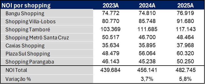 Receita Operacional Líquida (NOI) por shopping: Pequeno aumento no agrupado