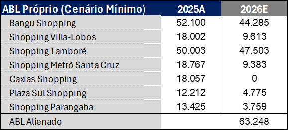 Área Bruta Locável Própria: Estimativa da venda de 5% da ABL própria total no cenário de venda mínima