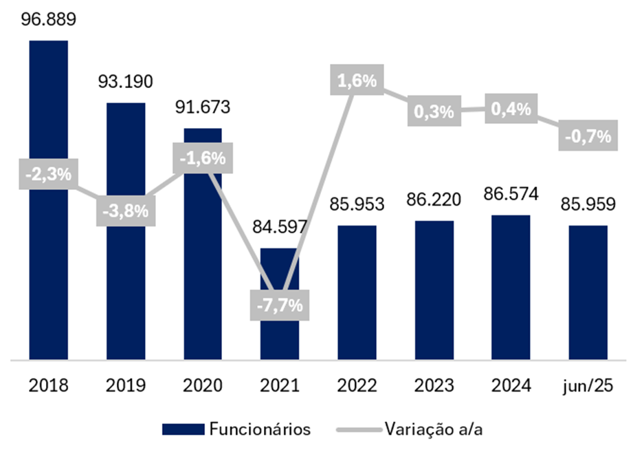 Evolução Número de Funcionários: Desde 2022, Certa Estabilidade no Número de Funcionários