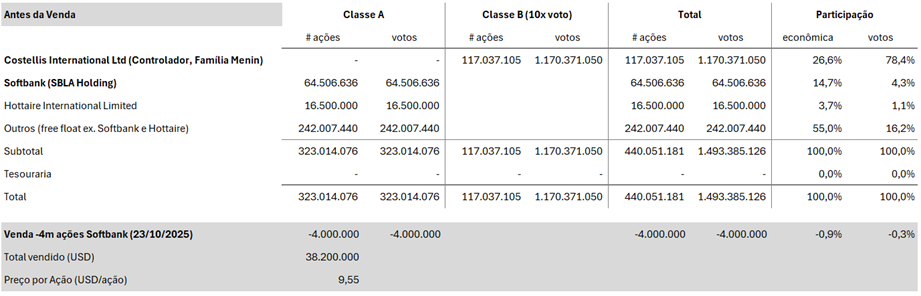Estrutura Acionária Antes da Venda do SoftBank (23/10/2025)
