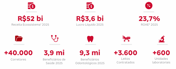 - Eficiência Operacional: Unificação de sistemas, gestão de rede credenciada e redução de despesas administrativas (SG&A).