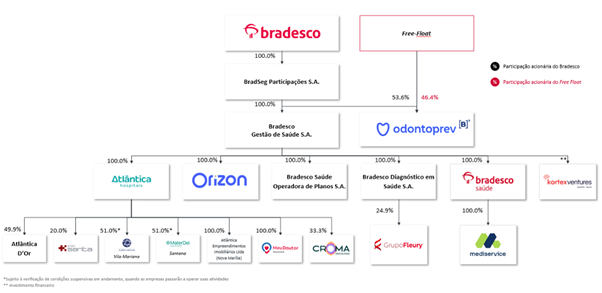 - Bradesco, que já era o controlador, concentra agora suas participações em saúde (incluindo a Bradesco Saúde e outras verticais de serviço) dentro da Odontoprev.