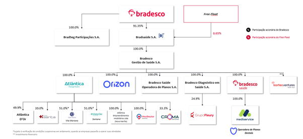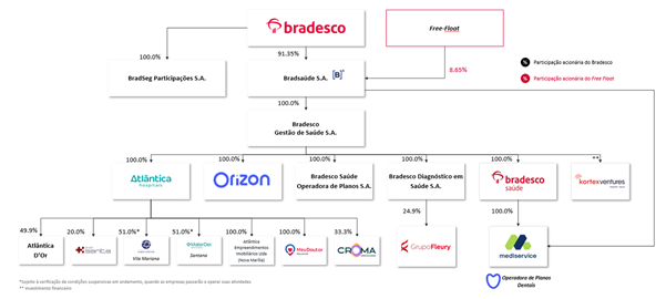 - A diferença implica um destravamento de valor próximo a R$ 18,7 bilhões no patrimônio líquido da Bradesco Gestão de Saúde, via reavaliação do ativo a mercado frente ao valor contábil.