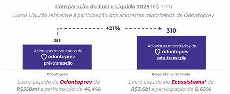 Lucro referente à participação dos minoritários de Odontoprev: Aumento de 21% na nova estrutura