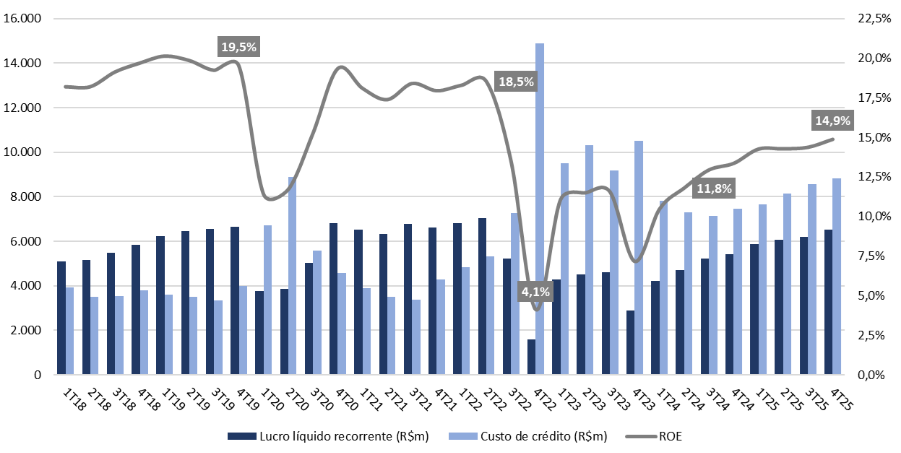 Guidance 2026: Lucro de R$ 27,5b, alta de +11,4% a/a com ROE de 15,3%