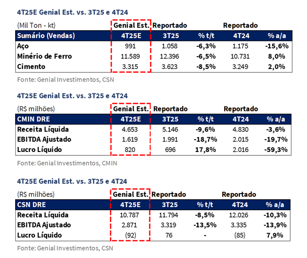 CSNA3 e CMIN3: 4T25 Prévia no detalhe!