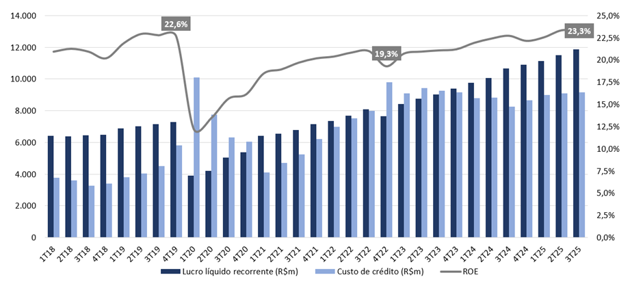 Lucro, Custo de Crédito e ROE: Rentabilidade Consistentemente Acima de 20%