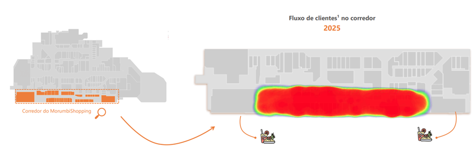 A utilização de dados é um diferencial relevante na nossa visão por contribuir para o aumento de fluxo de consumidores e para um melhor entendimento do comportamento dos mesmos. A gestão ativa do mix de lojas através de estudos de dados, tem sido fundamental para otimizar o fluxo de consumidores e maximizar vendas. Embora a comparação seja com 2021, um período de pandemia, a Multiplan destacou uma pequena mudança de um corredor do Shopping Morumbi, promovendo a realocação de restaurantes em pontas opostas. Como resultado, as vendas totais desse corredor cresceram de R$ 78,7 milhões em 2021 para R$ 217,4 milhões em 2025, uma alta de 176,1%, significativamente acima do crescimento de 85,8% observado no shopping como um todo.