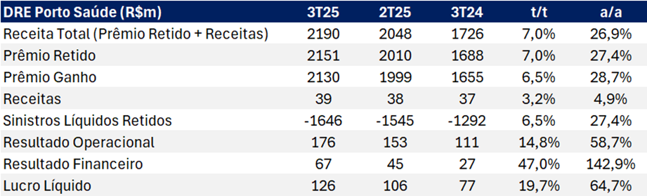DRE Porto Saúde 3T25 (R$m): Sólido Resultado