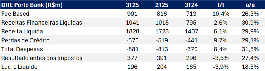 DRE Porto Bank 3T25 (R$m): Bom Desempenho
