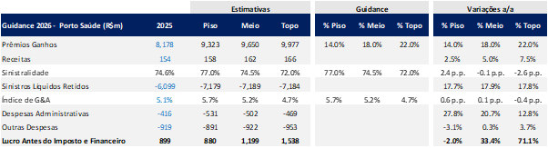 Guidance 2026: Estimativa para Porto Saúde