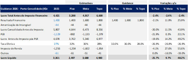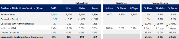 Guidance 2026: Estimativa para Porto Serviços