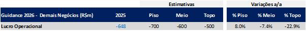 Guidance 2026: Estimativa para Demais Negócios