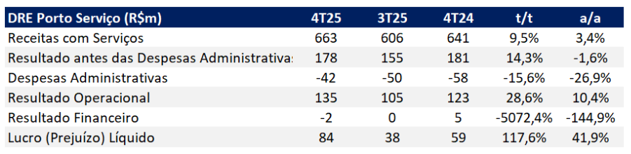 DRE Porto Serviço 4T25 (R$m): Trimestre mais forte, com ganhos de eficiência