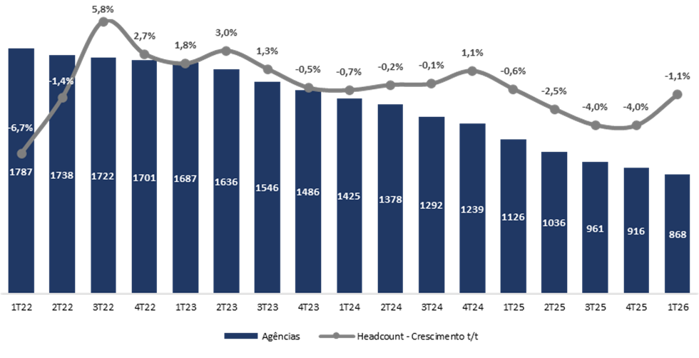 Número de Agências: Racionalização contínua da rede de agências e headcount