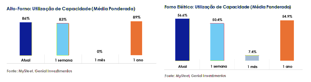 Aço: Utilização de BF se recupera; utilização de EAF continua subindo.