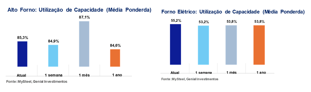 Aço: Utilização de EAF se recupera com retorno das usinas após manutenção.