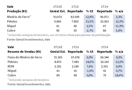 VALE3 Prévia Operacional 3T25: Produção e Vendas