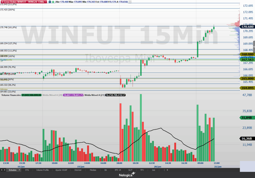 O WING26 fechou em alta de 0,70% aos 167.695 pontos. As próximas resistências ficam em 168.025 e 169.265 pontos. Já os próximos suportes ficam em 167.175, 167.040, 166.915 e 166.625 pontos.