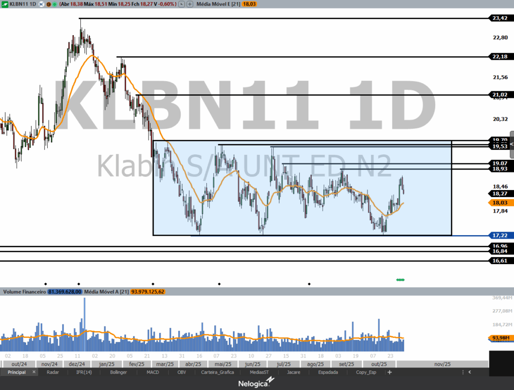 No curto e médio prazo está em tendência lateral (congestão) entre 17,22 (suporte muito forte) até 19,70 (resistência). Se testar e respeitar esse fundo em 17,22 pode abrir uma oportunidade de compra no Swing Trade com alvos nas próximas resistências que ficam em 18,93, 19,07 e 19,53.