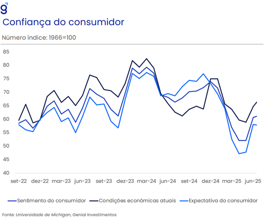A forte revisão altista do PIB do 2º trimestre (de 3,3% t/t para 3,8% t/t em termos anualizados), junto de outros dados de atividade divulgados recentemente, parece indicar que o pior já ficou para trás em termos dos indicadores de sentimento dos consumidores e empresários, e do efeito das tarifas sobre a incerteza e a economia em geral.