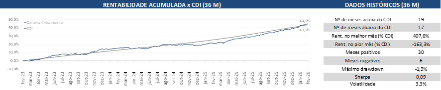 A Carteira Crescimento é mais adequada para investidores que aceitam um risco elevado e buscam maiores retornos.