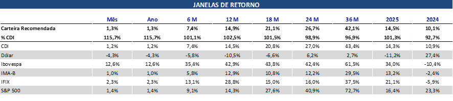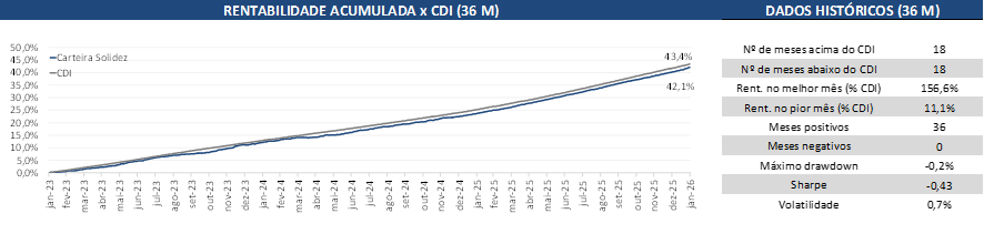A Carteira Solidez é mais adequada para investidores que possuem menor tolerância a risco.
