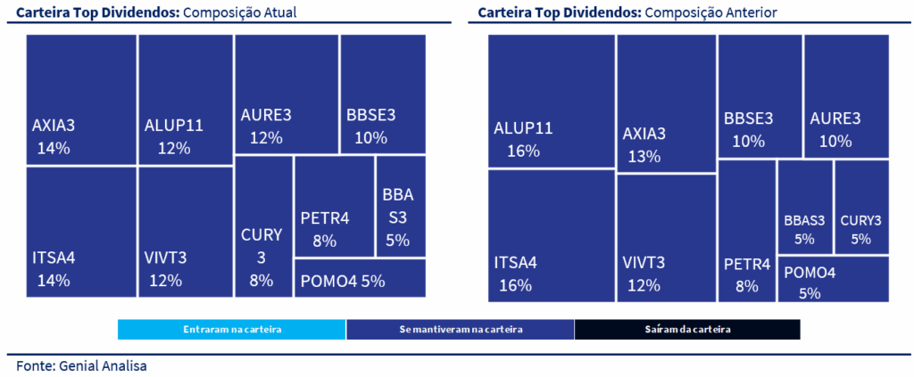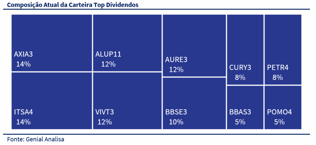 A carteira Top Dividendos segue com a mesma composição setorial: