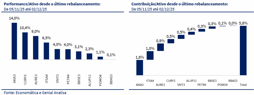Entramos dezembro mais confiantes na capacidade da carteira de continuar entregando performance superior, apoiada por fundamentos sólidos, geração de caixa consistente e uma construção balanceada entre qualidade e sensibilidade macro.