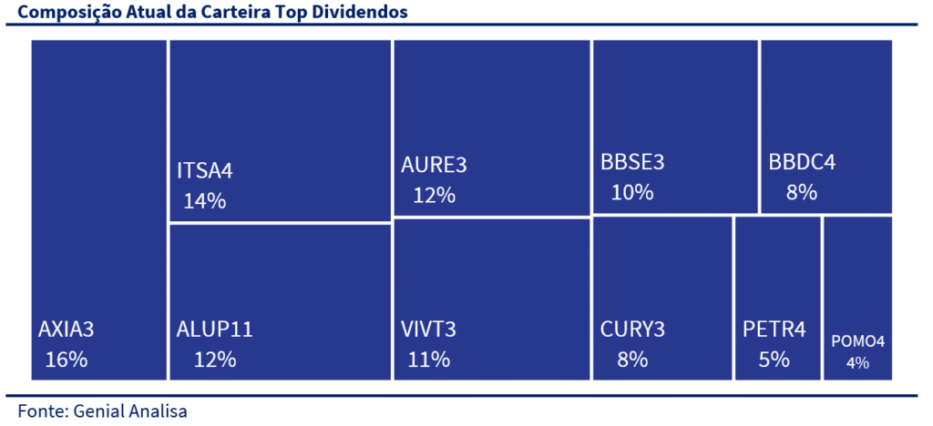 A carteira Top Dividendos segue com a mesma composição setorial: