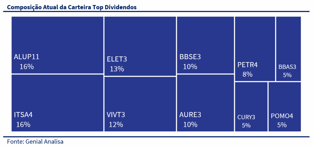 A carteira Top Dividendos segue com a seguinte composição setorial:
