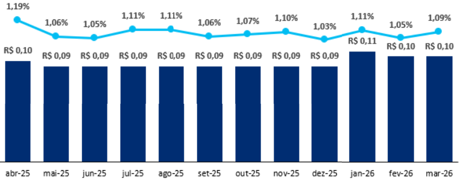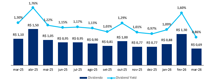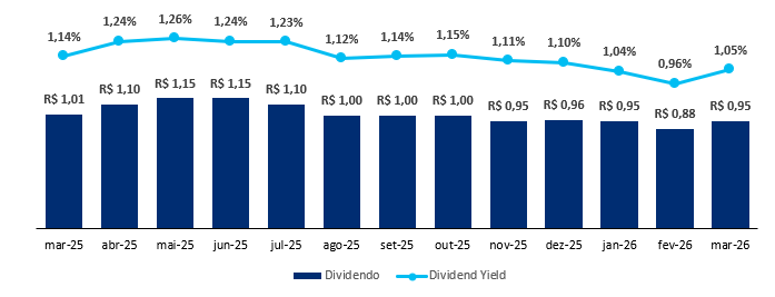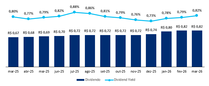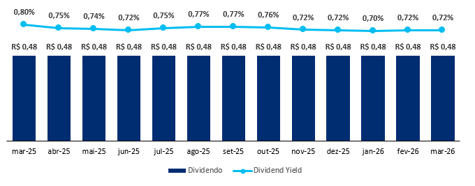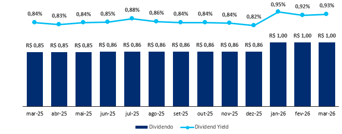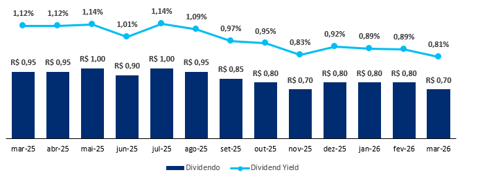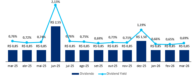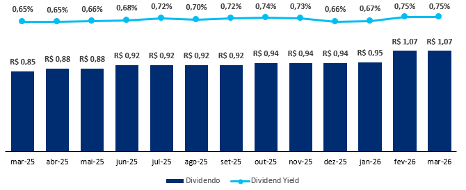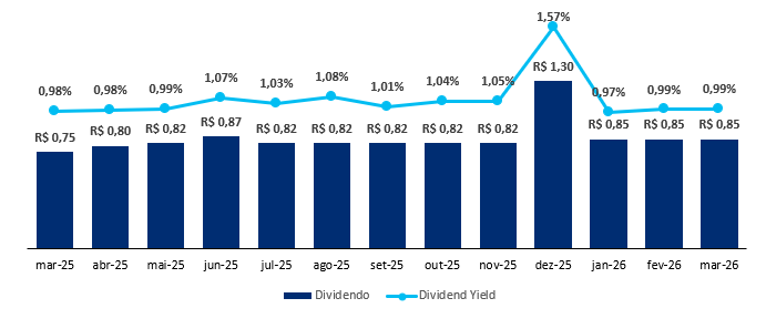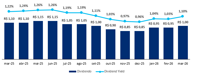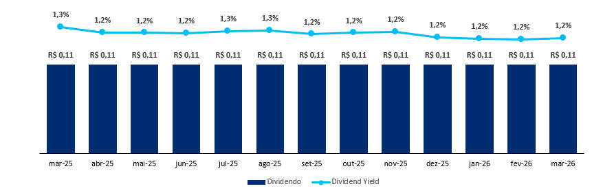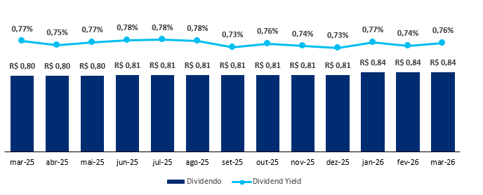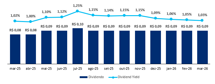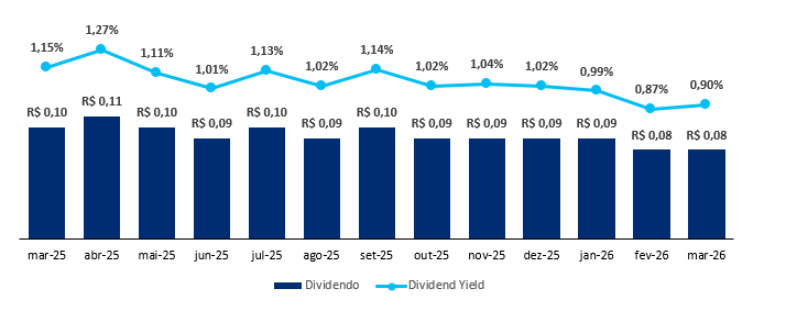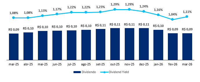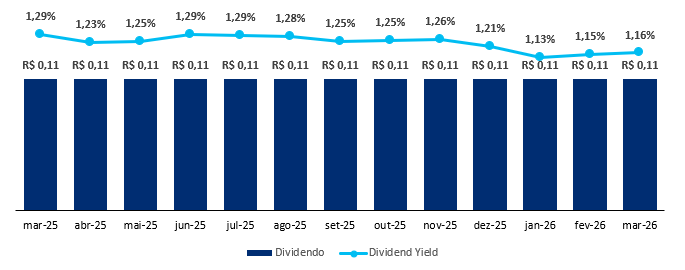 O fundo possui uma liquidez média diária de R$ 1,5 milhão e um histórico de dividendos de R$ 0,11/cota, levando a um Dividend Yield de 14,21% nos últimos 12 meses, reforçando a consistência e o valor do ativo.