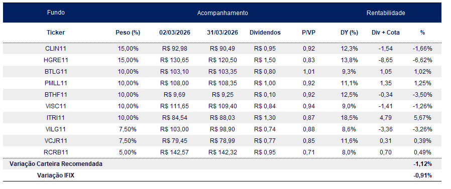 Carteiras Recomendadas > Fundos Imobiliários > Carteira Recomendada > Carteira Recomendada de FIIs – Abril 2026