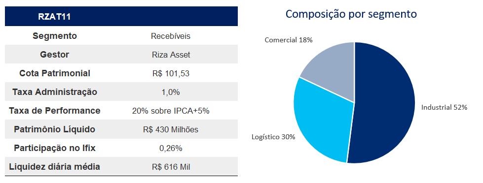 Fundo da Riza Asset, tem como objetivo gerar retornos consistentes acima do IPCA+5,0% ao ano, investindo em uma carteira imobiliária diversificada. A estratégia é centrada na aquisição de imóveis de empresas que buscam otimizar sua estrutura de capital por meio da desmobilização de ativos. O portfólio é composto, majoritariamente, por ativos industriais, logísticos e comerciais, com preferência por setores considerados resilientes.