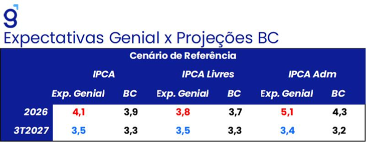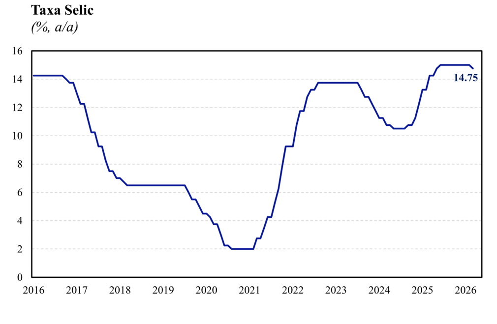 Em suma, avaliamos que o comunicado de hoje está consistente com um plano de voo base do Banco Central de seguir cortando a taxa Selic em 25 bps nas próximas reuniões, caso o cenário se mantenha estável, com uma barra mais elevada para pausar o ritmo de cortes do que para acelerá-lo, dado o aumento modesto na projeção diante do cenário atual. Em nossa avaliação, a projeção para a inflação de administrados aponta para um BC mais construtivo em termos de resolução do conflito, mostrando certa inclinação a seguir afrouxando a Selic no curto prazo, mas com probabilidade positiva de manutenção. Com o comunicado de hoje, incorporamos um viés altista para a nossa projeção de taxa Selic de 12,0% a.a. para o final de 2026.