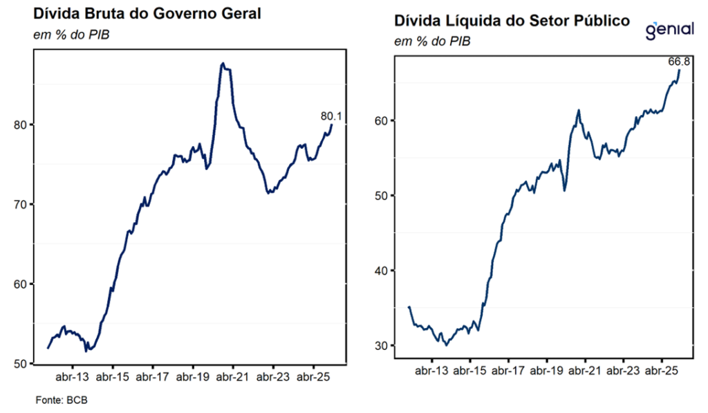 Em suma, os dados divulgados hoje seguem corroborando o nosso cenário de que o resultado primário consolidado do governo seguirá sendo pressionado pelo déficit a ser registrado pelo governo central ao longo de 2026. Ao nosso ver, a ausência de um ajuste estrutural pelo lado das despesas primárias somado ao desembolso com os juros nominais da dívida, que devem seguir elevados em um contexto de inflação mais pressionada e necessidade de juros mais elevados, devem continuar sendo os principais responsáveis pela continuidade da trajetória de deterioração da relação dívida/PIB. Seguimos com a avaliação de que a percepção de risco fiscal segue elevada, fato este que deve continuar exercendo um importante papel na determinação da trajetória das principais variáveis macroeconômica brasileiras ao longo de 2026. Com este resultado e a revisão nos parâmetros de inflação, crescimento e Selic, revisamos nossa expectativa para relação dívida/PIB de 83,3% para 82,8% do PIB.