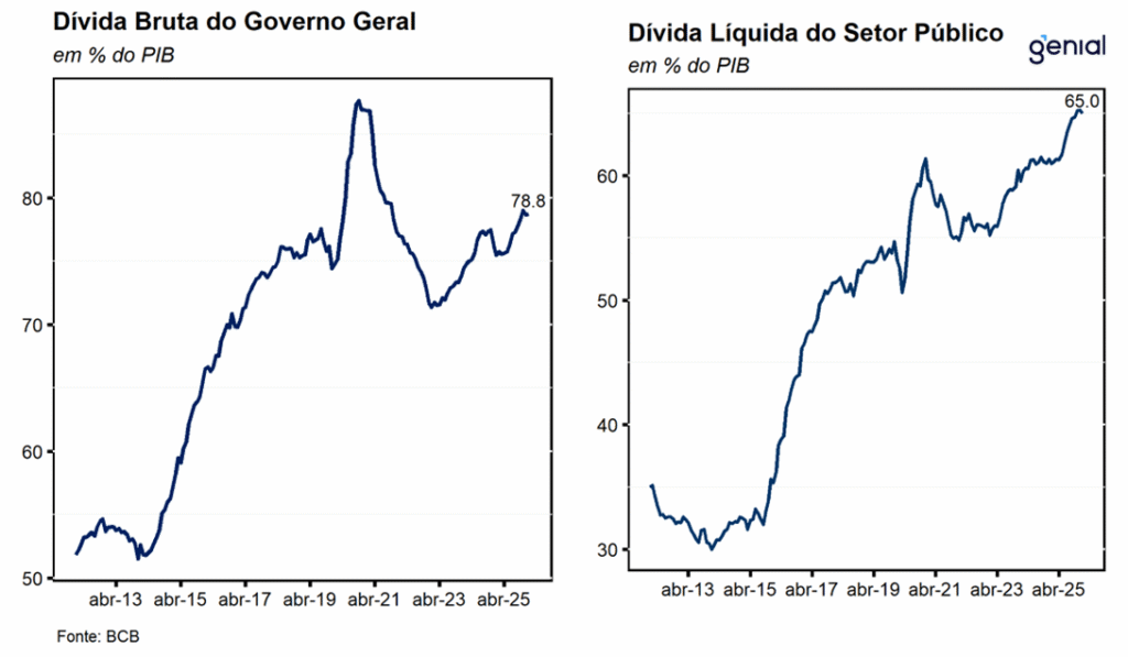 Em suma, os números seguem apontando para um elevado ritmo de crescimento das despesas primárias e de desembolso com os juros nominais da dívida que continuam sendo os principais responsáveis pela continuidade da trajetória de deterioração da relação dívida/PIB. Seguimos avaliando que o risco fiscal permanece significativamente elevado, fato este que deve continuar exercendo um importante papel na determinação da trajetória das principais variáveis macroeconômicas brasileiras. Com este resultado, mantemos a nossa expectativa de que a relação dívida/PIB deve encerrar o ano em 83,3%.