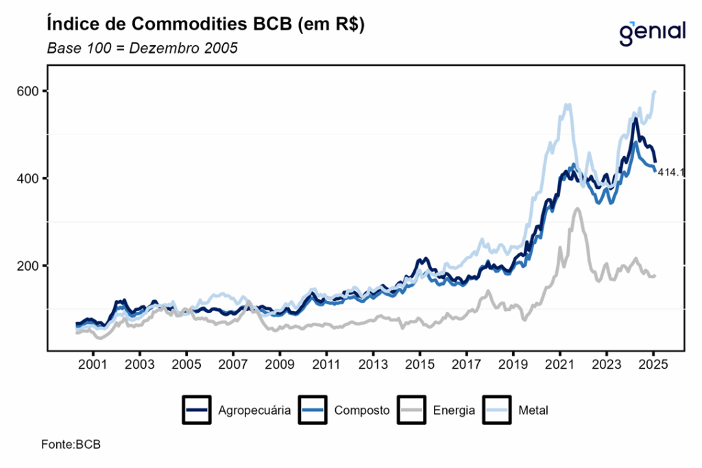 No geral, a nossa avalição é de que o arrefecimento da atividade ocorrido até agora não foi suficiente para retirar a economia de um quadro de superaquecimento (hiato do produto positivo), condição essa que impede um distensionamento das contas externas. Assim, o vetor de pressão altista sobre a taxa de câmbio continua a existir, o que somado as incertezas eleitorais e aos impulsos fiscais já contratados para o ano de 2026 pode resultar num cenário de desvalorização cambial.