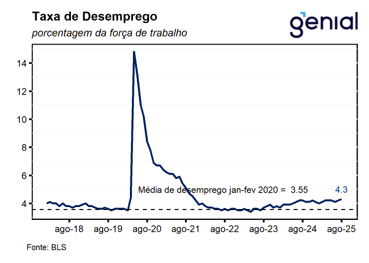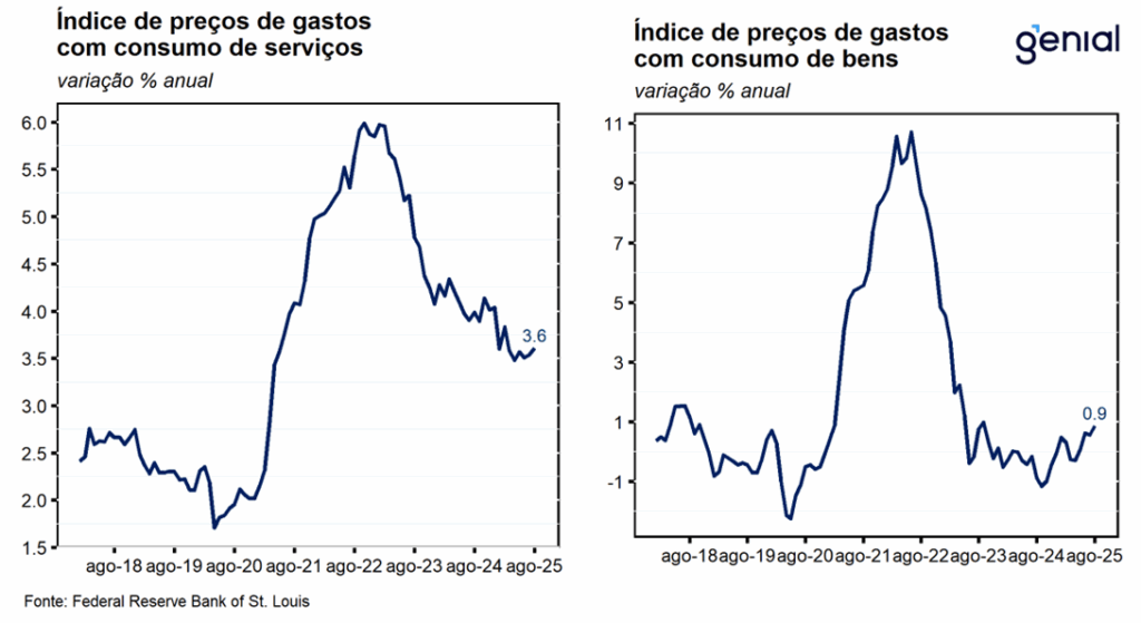 Assim como na reunião anterior, o comunicado buscou equilibrar elementos de tom mais “hawkish” – ao reconhecer que a inflação voltou a subir e permanece acima da meta de 2,0% – com sinais “dovish”, ao destacar uma mudança no balanço de riscos do mandato dual do Fed. Os dirigentes passaram a atribuir maior peso aos riscos de deterioração do mercado de trabalho em relação às pressões inflacionárias remanescentes, justificando assim o corte de 25 pontos-base na taxa de juros. A redação procurou, portanto, apresentar a decisão como uma resposta técnica à perda de dinamismo do mercado de trabalho, evitando, contudo, um tom excessivamente brando que pudesse ser interpretado como o início de um ciclo prolongado de afrouxamento monetário em meio às pressões políticas da administração Trump.