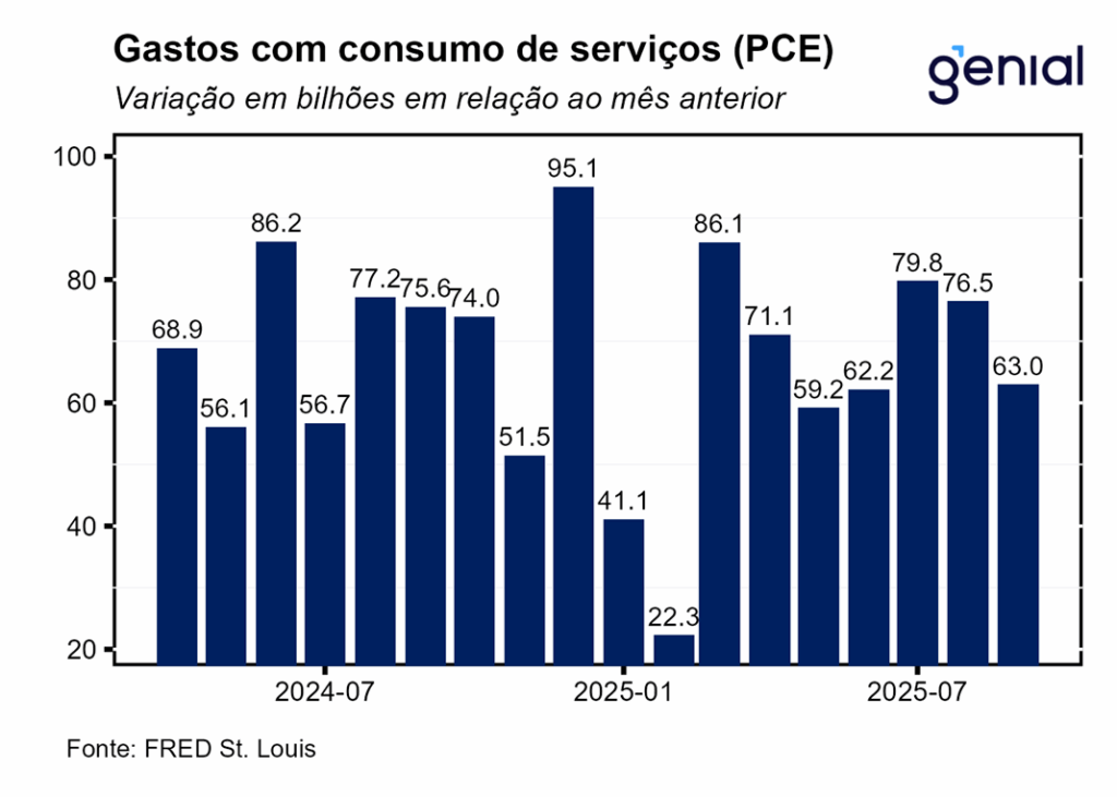 A partir do ano que vem, a perspectiva de aceleração da atividade após o fim do “shutdown” do governo, os impulsos fiscais da “One Big Beautiful Bill” e a agenda de desregulamentação que a administração Trump pretende implementar devem retirar o espaço para o FED dar continuidade ao ciclo de afrouxamento monetário, aumentando a cautela na condução da política monetária mesmo com um possível presidente do FED de viés mais “dovish” a partir de maio.