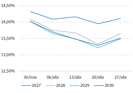Na última semana, a curva de juros futura apresentou movimento de acomodação nos prazos mais longos, em um contexto de melhora relativa do ambiente externo e redução de parte das pressões recentes sobre os ativos domésticos. Ainda assim, o cenário segue marcado por cautela, com o mercado avaliando os desdobramentos sobre inflação e atividade. A dinâmica reforça que, apesar de ajustes pontuais, as expectativas permanecem sensíveis ao cenário global e à condução da política monetária. Saiba mais